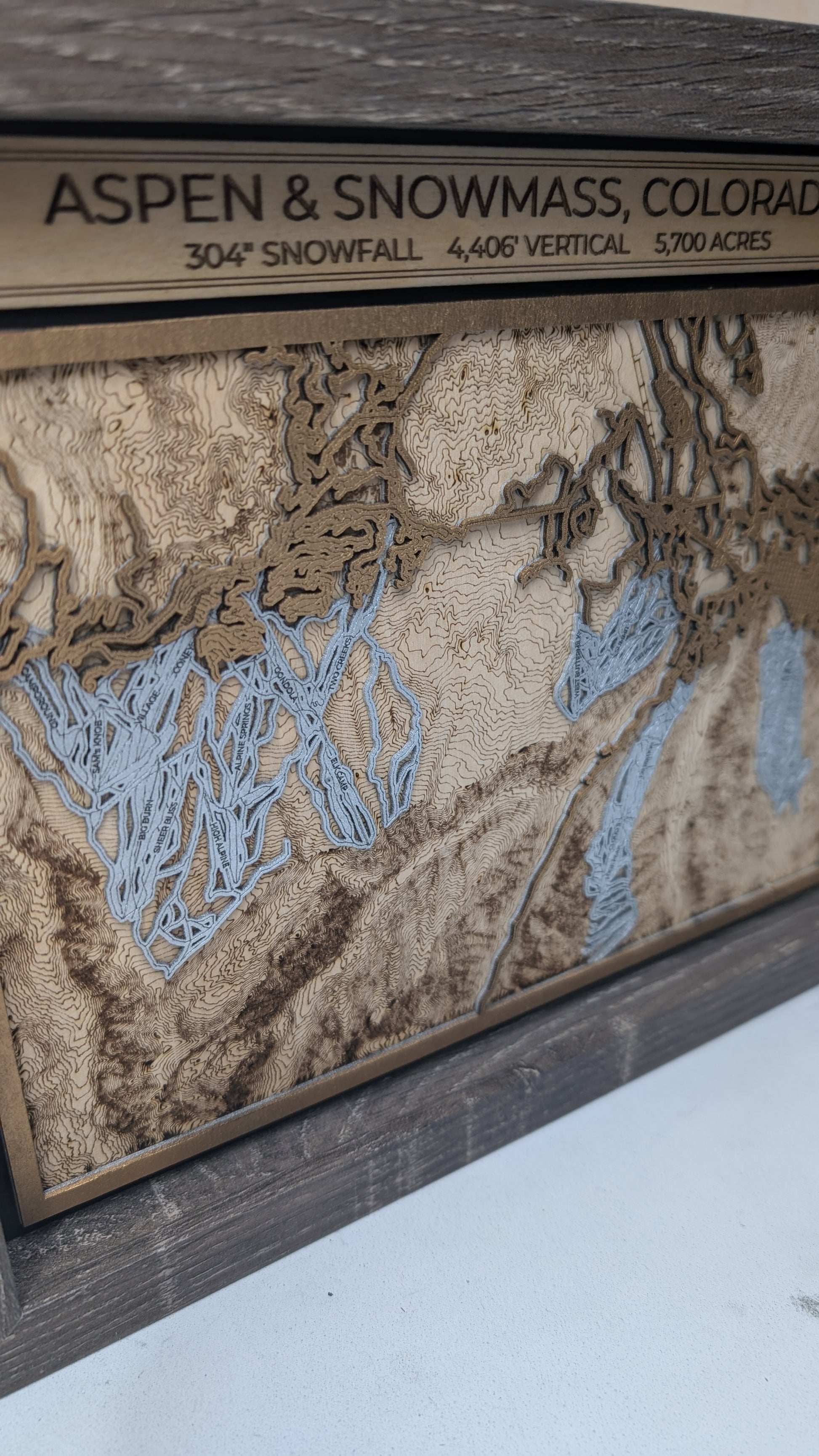 Explore the slopes of Aspen and Snowmass Ski Resort with this meticulously crafted 3D trail map. This 3D artwork transforms the mountain's geography into a striking visual piece. Perfect for enthusiasts who want to relive their favorite runs or plan their next adventure.