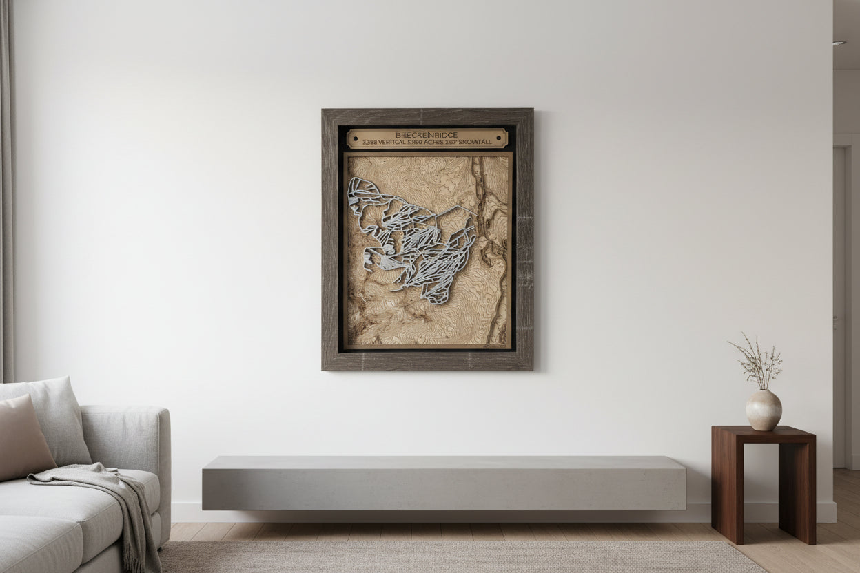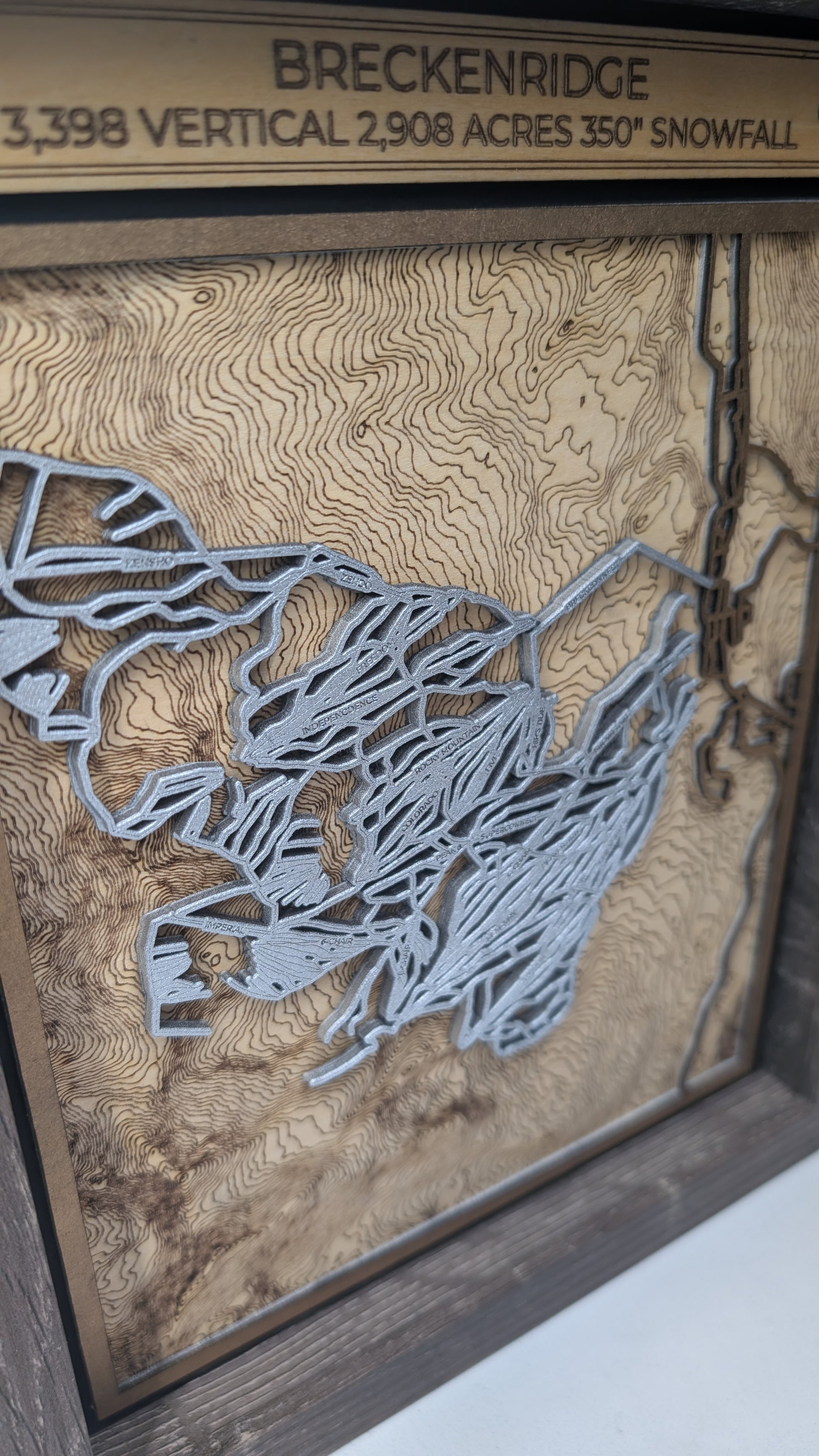 Explore the slopes of Breckenridge Ski Resort with this meticulously crafted 3D trail map. This 3D artwork transforms the mountain's geography into a striking visual piece. Perfect for enthusiasts who want to relive their favorite runs or plan their next adventure.