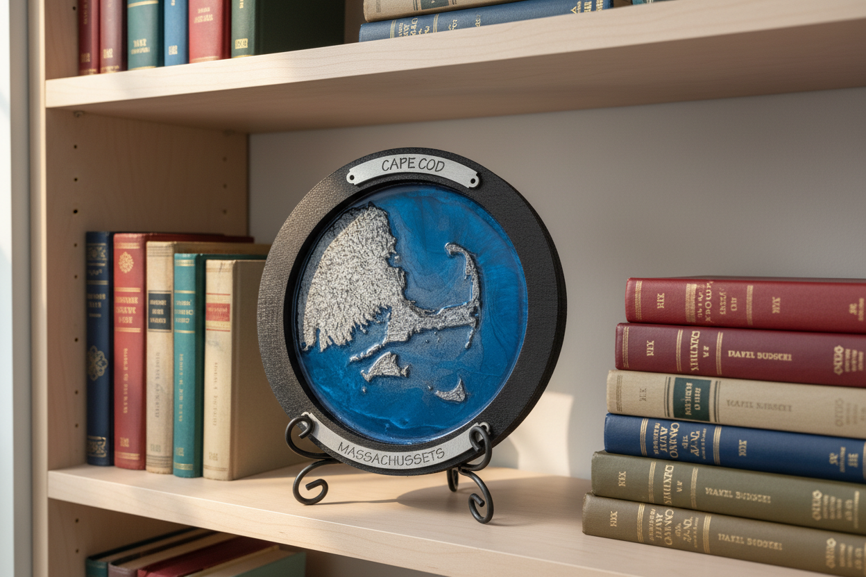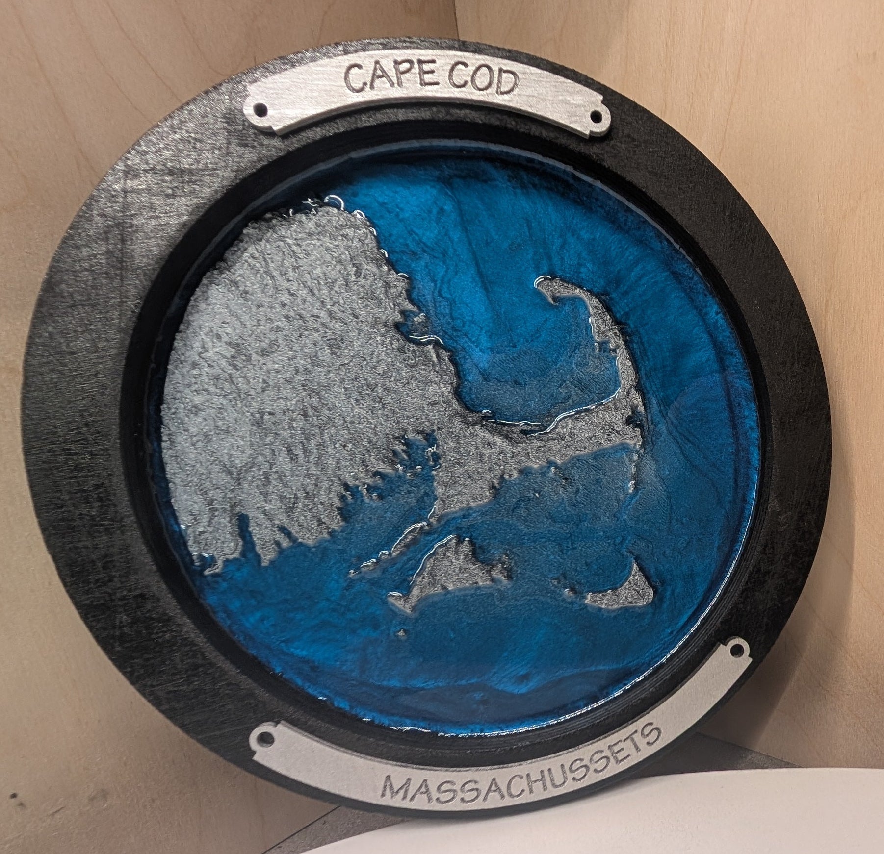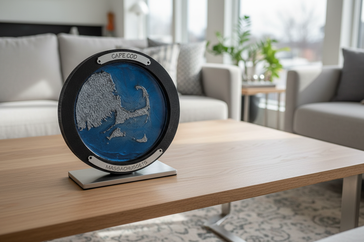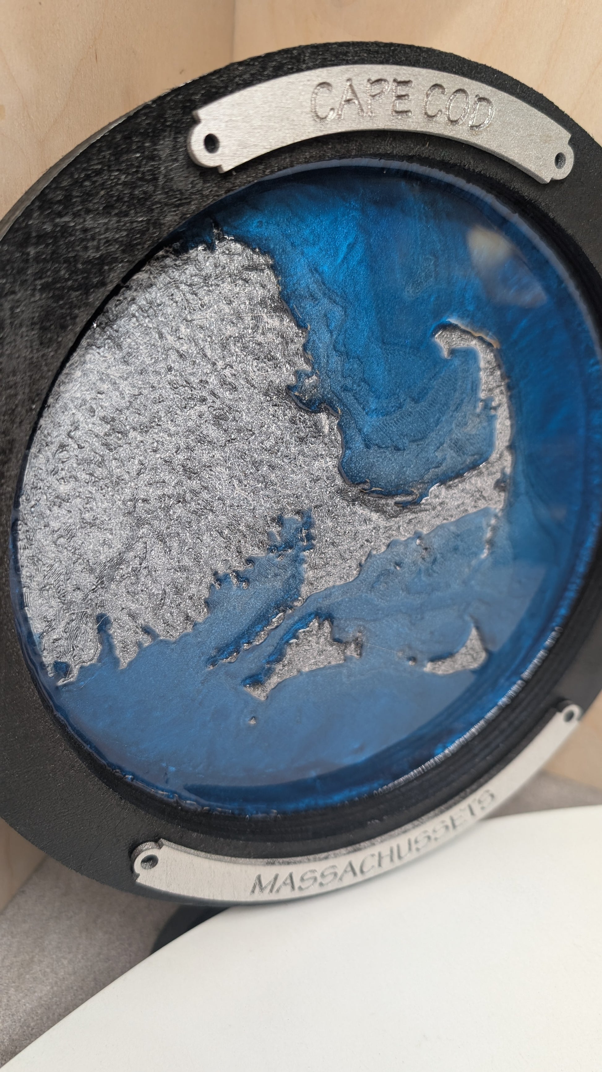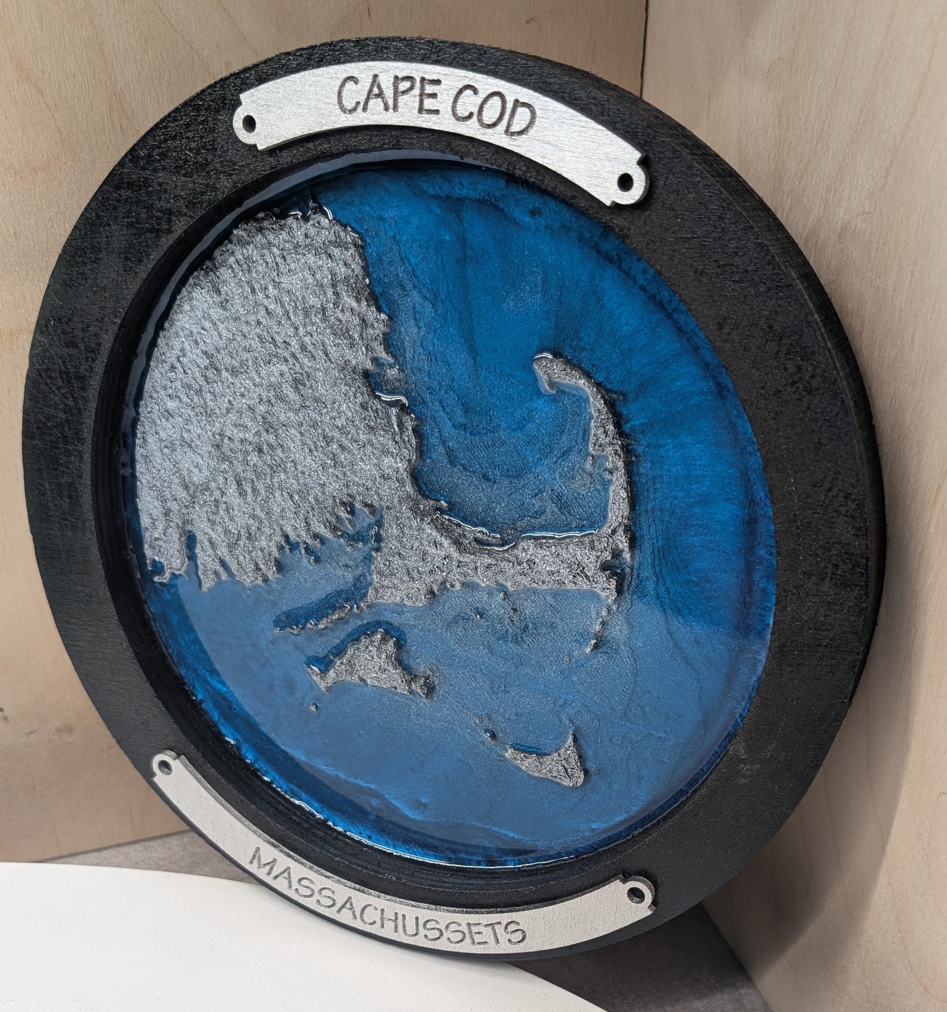 Dive into the depths of Cape Cod with this stunning topographical map that captures both the iconic coastline and the mysterious ocean floor below. Encased in a sleek metallic blue epoxy, this piece transforms geography into art—perfect for coastal lovers, map enthusiasts, or anyone who appreciates the hidden underwater landscape. Whether you're reminiscing about sandy shores or dreaming of deep-sea exploration, this unique blend of land and sea tells the complete story of one of America's most beloved destinations.