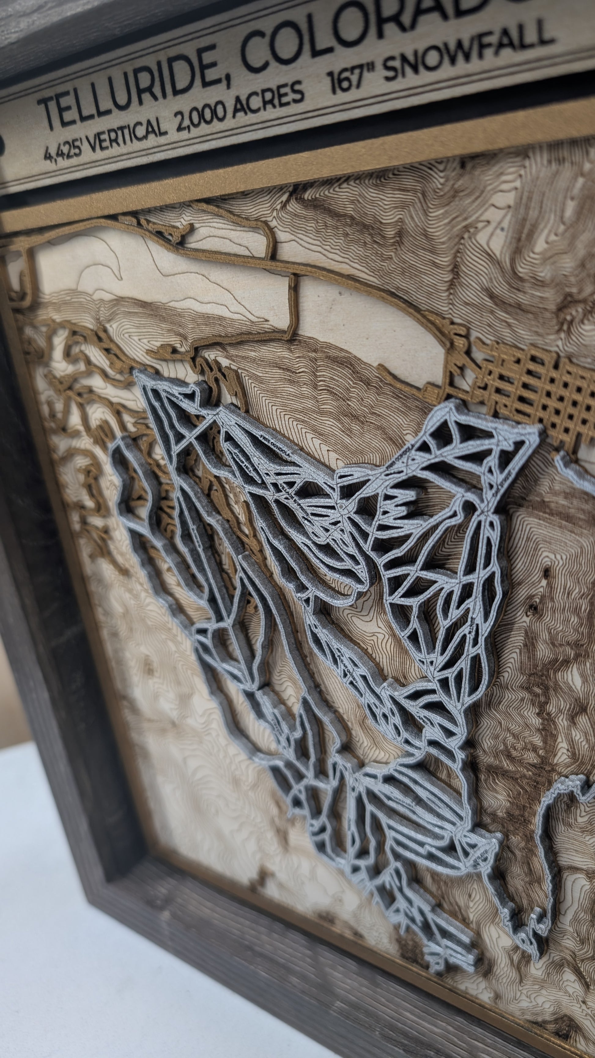 Explore the slopes of Telluride Ski Resort with this meticulously crafted 3D trail map. This 3D artwork transforms the mountain's geography into a striking visual piece. Perfect for enthusiasts who want to relive their favorite runs or plan their next adventure.